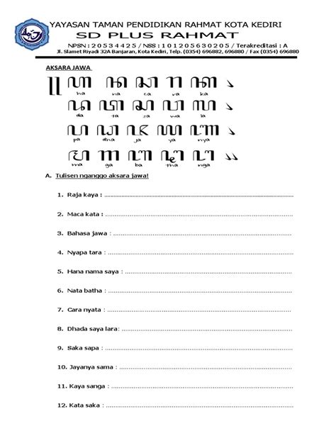 In addition to vowel signs, there are also diacritics that add consonants or modify the way a character is pronounced. These diacritics can indicate the presence of a consonant at the end of a syllable or change the sound of the vowel in a syllable. Mastering these diacritics is essential for writing complex words and sentences in Aksara Jawa. One common diacritic is the pangkon , which silences the inherent vowel sound, effectively closing the syllable with a consonant. Understanding how these diacritics work will greatly enhance your ability to read and write in Aksara Jawa.