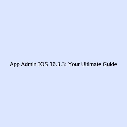 App Admin IOS 10.3.3: Your Ultimate Guide