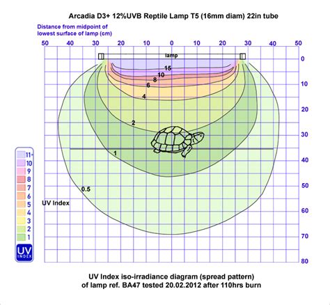 The Arcadia T5 UVB chart is a valuable tool for reptile keepers, providing guidance on selecting the appropriate UVB bulb based on the distance between the bulb and the reptile’s basking spot. The chart typically includes information on different Arcadia T5 UVB bulb strengths, such as 6% UVB and 12% UVB, and the corresponding distances at which these bulbs provide optimal UVB levels. To use the chart effectively, you need to know the distance from the bulb to the primary basking area in your reptile’s enclosure. This distance will help you determine which bulb strength is most appropriate. For example, if the basking spot is 12 inches away from the bulb, the chart might recommend a 6% UVB bulb. If the distance is greater, such as 18 inches, a 12% UVB bulb might be necessary to ensure adequate UVB exposure. It’s crucial to follow the chart’s recommendations closely, as using a bulb that is too strong or too weak can be detrimental to your reptile’s health. Too much UVB can cause skin and eye damage, while too little UVB can lead to vitamin D3 deficiency and MBD. Always measure the distance accurately and consider any obstructions, such as mesh screens, which can reduce UVB output. Understanding the Arcadia T5 UVB chart empowers you to make informed decisions about your reptile’s lighting needs, ensuring that they receive the correct amount of UVB for optimal health and well-being. Remember, the chart is a guideline, and regular monitoring of your reptile’s health and behavior is essential to ensure that the lighting setup is working effectively.