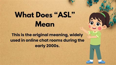Initially, the acronym ASL primarily stood for Age, Sex, and Location . This phrase was extensively used in online interactions, particularly during the early days of the internet and in chat rooms. Think back to the days of dial-up and the wild west of the web – this was the standard opener! Individuals would often use ASL as an icebreaker, a way to quickly gather some basic information about someone they were chatting with online. It was a rapid-fire way to get to know someone without revealing too much personal information.
