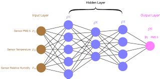 • Weights: These are the parameters that the network learns during training. Each connection between neurons in adjacent layers has a weight associated with it. The weight determines the strength of the connection. During training, the network adjusts these weights to minimize the difference between its predictions and the actual values.