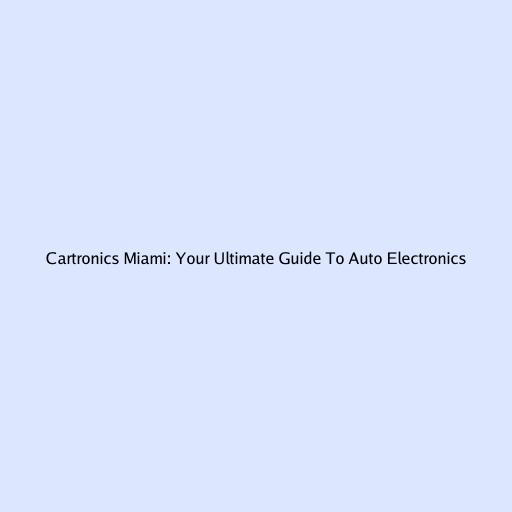Cartronics Miami: Your Ultimate Guide to Auto Electronics