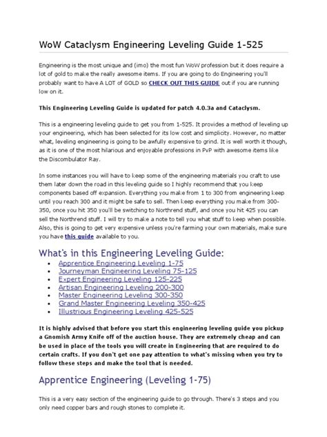 Leveling Your Engineering Skill: A Step-by-Step Guide in Cataclysm