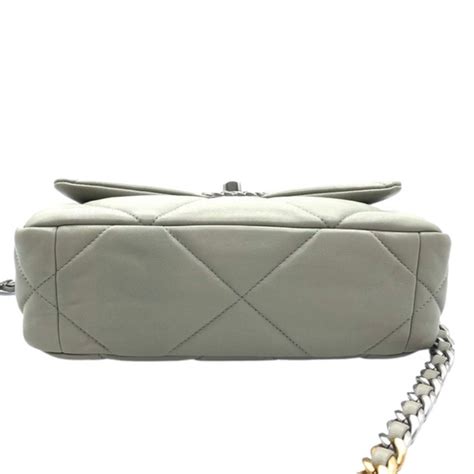 Then we have the Maxi Chanel 19 Grey Bag , the largest size, designed for those who want a statement piece. It’s perfect for travel or when you just need to carry a lot of stuff. It’s a real showstopper. The sizes can sometimes vary slightly depending on the specific collection or season. Always check the official Chanel website or a reputable retailer for the most up-to-date information.