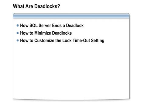 Deadlocks occur when two or more transactions are blocked indefinitely, waiting for each other to release locks. To avoid deadlocks, access resources in the same order in all transactions, use shorter transactions, and set a deadlock priority. Implement error handling to detect and handle deadlocks gracefully. Deadlocks can cause significant performance problems and disrupt application availability. Following best practices for deadlock prevention can help minimize the occurrence of deadlocks and ensure smooth database operations. Regular monitoring for deadlocks and analysis of deadlock graphs can help identify and address the root causes of deadlocks.