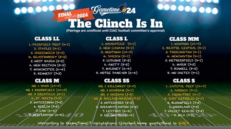 The CIAC divides its football teams into various divisions based on school size and competitive balance. These divisions are further grouped into conferences, creating a structured framework for the regular season and playoffs. This system aims to create a level playing field, ensuring that teams compete against schools of similar sizes and abilities. The main divisions usually include classifications like Class LL, Class L, Class MM, Class M, Class SS, Class S, and other variations. Within each division, teams are sorted into conferences that may be determined geographically or by a combination of factors. This structure is essential for fair competition. Teams within a conference will play each other during the regular season, battling to earn a spot in the playoffs. These conferences can include familiar names like the Central Connecticut Conference (CCC), the Southern Connecticut Conference (SCC), and others, each fostering rivalries and traditions that make the game even more exciting. The playoff system is designed to provide the best teams with a chance to compete for a state championship. Teams that perform well during the regular season earn a spot in the playoffs, where the competition intensifies, and the stakes get higher. These playoff games are where legacies are made. Understanding these divisions and conferences is key to following the CIAC football schedule 2024 . Knowing which division your favorite team belongs to will help you track their progress and anticipate potential playoff matchups. These divisions and conferences also showcase the depth of talent within Connecticut high school football. The variety of teams, from large schools to smaller ones, means there’s something for everyone to root for. This competitive balance also creates a diverse range of playing styles and strategies, adding to the intrigue of each game. The goal is to create a dynamic and engaging season, where every game brings excitement and unpredictability, and every team has a chance to shine. So, as you start your planning, be sure to familiarize yourself with the division and conference structure. It will significantly improve your viewing experience, making it easier to follow your favorite teams and understand the pathways to the championship.