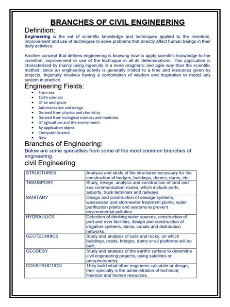Hey guys! Civil engineering, the backbone of modern infrastructure , is a vast and diverse field. It’s not just about building bridges and roads, although those are definitely a big part of it! This discipline encompasses a wide range of specializations, each playing a crucial role in shaping the world around us. Whether you’re a student considering your options, a professional looking to specialize, or just curious about the field, understanding the different branches of civil engineering is super important. So, let’s dive in and explore the fascinating world of civil engineering branches!