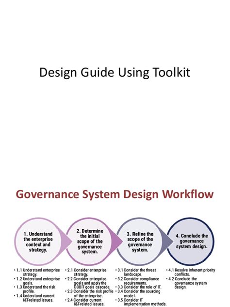 Alright, let’s get down to the nitty-gritty and break down the key components of the COBIT 2019 Design Toolkit and how they work together. It’s like assembling a complex puzzle, but the end result is a picture of strong IT governance . First up, we have the governance objectives . These are the overarching goals you want to achieve through your IT governance. Think of them as the big-picture targets. Examples might include improving IT service delivery, ensuring compliance with regulations, or reducing IT-related risks. The COBIT 2019 Design Toolkit helps you define these objectives based on your business needs. Next, we have the design factors . These are the key elements that influence how you design your IT governance system. They’re like the ingredients in your recipe. These can include your organization’s culture, its structure, the regulatory environment you operate in, and even the skills of your IT staff. The toolkit provides a structured way to evaluate these factors and tailor your governance approach accordingly. Then, we have the governance components . These are the specific practices, processes, and tools that make up your IT governance system. Think of them as the individual pieces of your puzzle. These components could include things like risk management frameworks, change management processes, or performance monitoring systems. The COBIT 2019 Design Toolkit helps you select the right components and integrate them seamlessly. This integrated approach ensures that all elements work in harmony to achieve your governance objectives. It promotes a holistic view of IT governance , preventing silos and ensuring that all aspects of IT align with your business goals. It’s like having a well-oiled machine where all the parts contribute to a smooth operation. This system also focuses on IT management .
