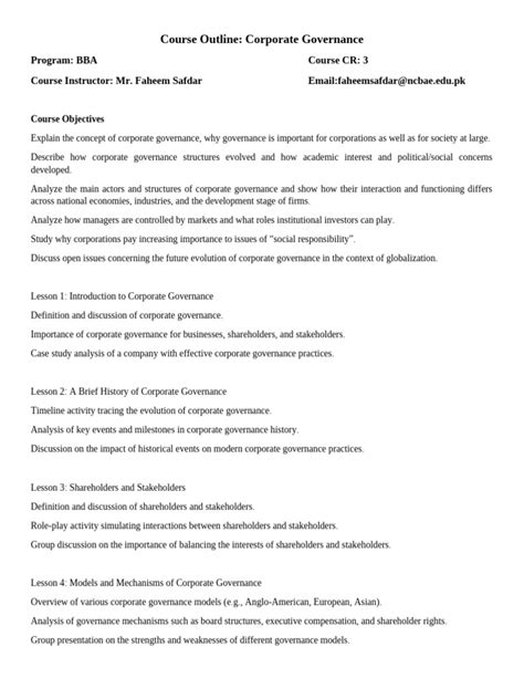 Corporate Governance Course Outline: Your Essential Guide