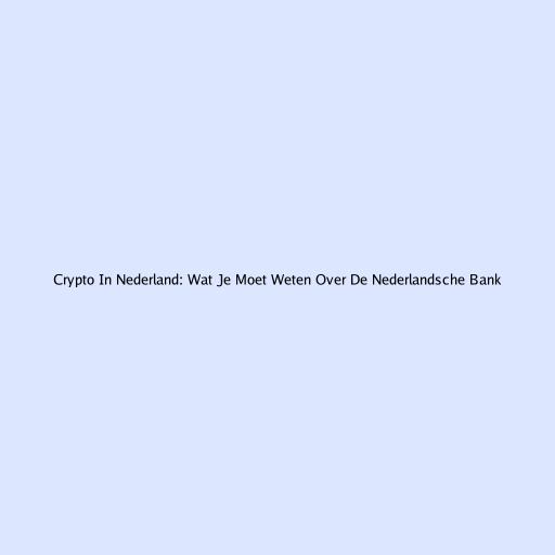 Crypto In Nederland: Wat Je Moet Weten Over De Nederlandsche Bank