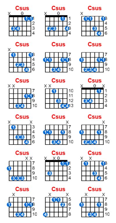 Lastly, experiment with different voicings and inversions . Try playing the Csus6 chord in different positions on the neck to create different sounds. Learn how to use it in various chord progressions and song contexts. Understanding how to use the Csus6 in different ways will make you a more versatile and creative guitarist. Try using the Csus6 as a substitute for a C major chord in songs you already know. This will help you understand how the chord functions in different musical contexts.