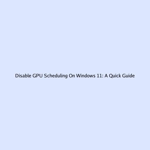 Disable GPU Scheduling On Windows 11: A Quick Guide