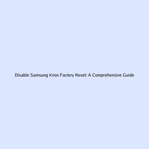 Disable Samsung Knox Factory Reset: A Comprehensive Guide