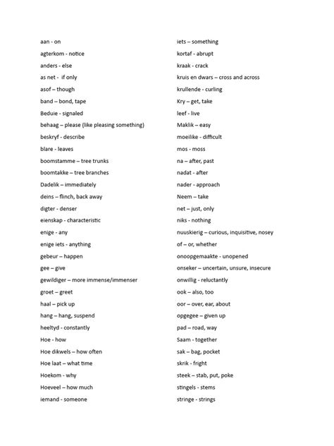 So, why should you even bother learning about Afrikaans words , right? Well, for starters, Afrikaans is spoken by millions of people, primarily in South Africa and Namibia. It’s a vibrant language that reflects a complex history, influenced by Dutch, Malay, Portuguese, and indigenous African languages. Learning a few key phrases and words can make a huge difference if you ever find yourself in these regions. Imagine being able to greet someone with a friendly “ Goeiedag! ” (Good day!) or express your appreciation with “ Baie dankie! ” (Thank you very much!). It shows respect and makes connections so much easier. Beyond practicalities, Afrikaans words often carry a certain charm and expressiveness that you won’t find in other languages. They can be poetic, humorous, and deeply rooted in the local culture. For instance, the word “ gesellig ” is famously difficult to translate directly into English. It encompasses a feeling of coziness, conviviality, warmth, and good company all rolled into one. It’s a feeling, an atmosphere, and a state of being that’s central to the Afrikaans cultural experience. Learning these words isn’t just about memorizing vocabulary; it’s about understanding a culture, a history, and a way of life. It’s about gaining a new perspective and enriching your own understanding of the world. Plus, let’s be honest, learning a new language or even just a few words is a fantastic brain workout! It keeps your mind sharp and introduces you to new ways of thinking and expressing yourself. So, the reasons are many – from practical communication and cultural understanding to personal enrichment and cognitive benefits. It’s a journey well worth taking, guys!