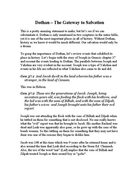 Let’s talk about why Dothan, Israel , really captured the world’s attention – its profound biblical significance. For many of us, the name Dothan immediately conjures up the dramatic story of Joseph from the Book of Genesis. You know, the favorite son of Jacob, who received that famous, multi-colored coat? His brothers, driven by jealousy, decided to get rid of him. And where did they do it? Right here in Dothan. The biblical account (Genesis 37:12-36) vividly describes how Joseph, sent by his father to find his brothers grazing their flocks near Dothan, was met with a sinister plan. They stripped him of his coat, threw him into a pit, and then sold him to Ishmaelite traders heading towards Egypt. This single event catapulted Dothan into biblical lore , making it a landmark in one of the most influential narratives in the Hebrew Bible and, subsequently, the Christian Old Testament. But the significance of Dothan doesn’t stop with Joseph’s dramatic fall. The site is also associated with other biblical events and figures. For instance, the prophet Elisha and his servant had a pivotal encounter here, as described in 2 Kings 6:8-23. When the Aramean army surrounded the city, intending to capture Elisha, the prophet prayed, asking God to strike his enemies blind. This prayer was answered, and Elisha was able to lead the bewildered Arameans into Samaria, where they were subsequently captured. Elisha’s encounter at Dothan highlights the theme of divine intervention and protection, reinforcing the spiritual importance of the location within the biblical narrative. The strategic location of Dothan, situated on a plateau overlooking fertile plains, also made it a natural meeting point and a place of refuge or conflict throughout ancient history. Its position along key trade routes meant that it would have been a bustling center, susceptible to the political and military shifts of the region. The biblical narratives are not just theological texts; they are also historical accounts that often reflect the geopolitical realities of their time. The mentions of Dothan in these sacred texts suggest its importance as a populated and significant settlement during the periods of the Israelite monarchy and beyond. Archaeologists have indeed found evidence supporting its long history of occupation, with layers of settlement dating back to the Bronze Age and Iron Age, periods relevant to the biblical accounts. The presence of fortifications and dwellings indicates a well-established community. Therefore, when we talk about Dothan, we’re not just discussing a single biblical incident; we’re exploring a site imbued with layers of historical and spiritual meaning, a place where divine encounters and human drama unfolded, shaping the narratives that continue to resonate today. It’s a place where the past truly comes alive, offering a tangible connection to the stories that have formed the bedrock of faith for millions.