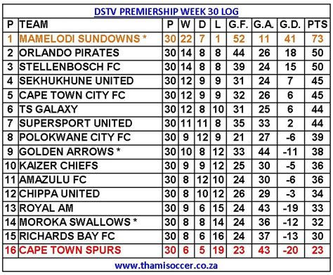 For those of you who might be new to following the beautiful game or just want a refresher, understanding how to properly read the DStv Premiership log is your gateway to becoming a true expert. It’s not just a jumble of numbers and team names; it’s a meticulously organized snapshot of the entire season’s progress. Let’s break down each column you’ll typically find on any official DStv Premiership league table. First up, you’ll see the Position (Pos) column, which simply indicates a team’s current rank from 1st to 16th. This is the most immediate indicator of how well (or not so well) a team is performing. Next, the Team column lists all the clubs competing in the DStv Premiership. Following that, you’ll find Played (P or GP), which tells you exactly how many matches a team has contested so far in the season. This is crucial for comparing teams, as a side with fewer games played might have