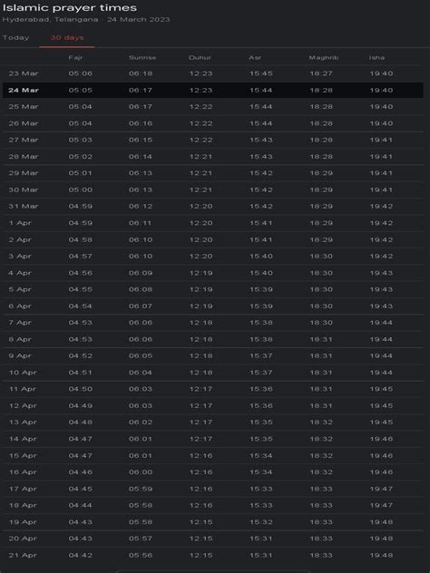 • Verify with multiple sources: Cross-check the prayer time with multiple sources to ensure accuracy. Compare the time from your local mosque with the time provided by a reliable app or website.