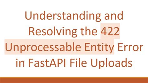 Hey there, fellow developers! Ever stumbled upon a FastAPI application and been greeted with a 422 Unprocessable Entity error? It’s a pretty common hiccup, but don’t sweat it – we’re going to break down what this error means, why it pops up, and most importantly, how to squash it. Think of this as your friendly guide to navigating the 422 Unprocessable Entity in FastAPI , turning those head-scratching moments into confident coding victories. Let’s dive in!