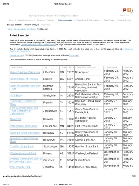 Accessing and understanding the FDIC Failed Bank List is straightforward. The FDIC maintains a publicly accessible website where the list is regularly updated. Users can easily search and filter the list by various criteria, such as closing date, state, or acquiring institution. Each entry provides a snapshot of the bank’s key information, including its assets, liabilities, and the resolution method used by the FDIC. The website also offers additional resources, such as press releases, legal documents, and frequently asked questions, to help users understand the context and implications of each bank failure. For those who prefer a more structured analysis, the FDIC publishes reports and studies that provide in-depth insights into the causes and consequences of bank failures. These reports often include statistical data, trend analysis, and case studies, offering a comprehensive view of the FDIC’s resolution activities. Whether you’re a financial professional, a researcher, or simply a curious member of the public, the FDIC Failed Bank List and its associated resources provide a wealth of information about the banking industry and the FDIC’s role in safeguarding the financial system. The FDIC’s commitment to transparency and accessibility ensures that this information is readily available to anyone who seeks to understand the dynamics of bank failures and their impact on the economy.