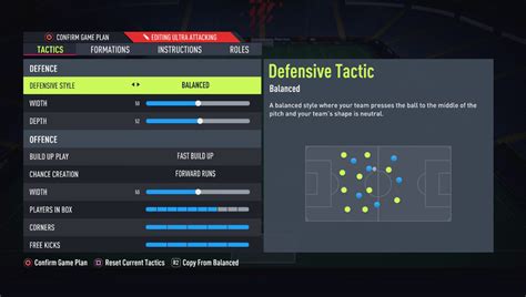 Once you’ve nailed down your preferred formation, it’s time to dive into the nitty-gritty of custom tactics . This is where you truly get to imprint your style of play onto your team, tweaking sliders to control everything from how quickly your players move up the pitch to how aggressively they press the opponent. These settings are vital for implementing the best FIFA 22 in-game tactics, as they dictate your team’s behavior in different phases of the game. Let’s break down the key areas. First up, Defensive Style . This is all about how your team reacts when you lose possession. Do you want to immediately swarm the opponent and try to win the ball back high up the pitch ( Press After Possession Loss or Constant Pressure )? Or do you prefer to be more compact and deny space, waiting for the right moment to strike ( Balanced or Drop Back )? Constant Pressure is incredibly demanding on your players’ stamina and can leave you exposed defensively if not managed well, but it can be devastating against opponents who are prone to errors under pressure. Balanced is, well, balanced – it offers a good mix of defensive solidity and proactive defending. Drop Back is for those who want to be incredibly secure at the back, inviting pressure and looking to exploit spaces on the counter. Next, we have Defensive Width and Depth . Width dictates how spread out your defense is. A narrower defense (e.g., 35-45) can make it harder for opponents to play through the middle, but might leave space out wide. A wider defense (e.g., 50-60) can cover the flanks better but might create gaps in the center. Depth is crucial for your offside trap and how high up the pitch your defensive line sits. Higher depth (e.g., 50-65) can help win the ball back higher and prevent opponents from building attacks easily, but it also leaves you vulnerable to through balls. Lower depth makes your defense more compact and harder to break down directly, but can invite sustained pressure. Moving onto Offensive Style . This defines how your team approaches building attacks. Long Ball focuses on getting the ball forward quickly to your strikers, ideal for counter-attacks. Possession encourages shorter passes and patient build-up play. Fast Build Up aims to get the ball forward rapidly while maintaining possession, a nice middle ground. Direct Passing is a bit of a hybrid, looking for quick passes to players making runs. The choice here really depends on your player instructions and preferred playstyle. Finally, we have Offensive Width, Players in Box, Corners, and Free Kicks . Offensive Width controls how spread out your attackers are. More width can stretch the opponent’s defense, creating space centrally. Players in Box dictates how many players push forward for attacks. More players in the box means more attacking options but can also leave you exposed if possession is lost. Corners and Free Kicks are more situational but can be crucial for scoring goals. Tweak these settings to match your formation and your personal strengths, guys. Remember, these custom tactics are the engine of your team, and fine-tuning them is absolutely essential for the best FIFA 22 in-game tactics.
