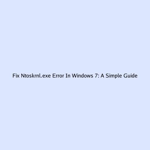 Fix Ntoskrnl.exe Error In Windows 7: A Simple Guide