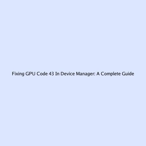 Fixing GPU Code 43 in Device Manager: A Complete Guide