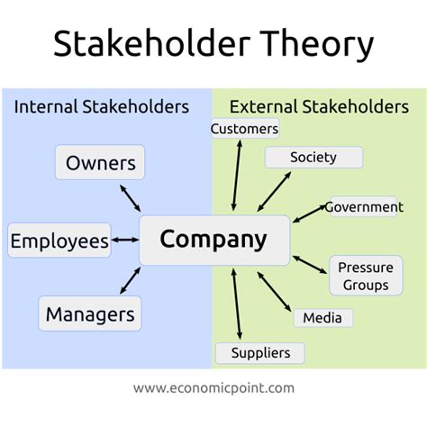 At the heart of Freeman’s theory is the concept of a stakeholder . Unlike the traditional view that narrowly defines stakeholders as only those with a financial investment in the company (i.e., shareholders), Freeman offers a much broader definition. He defines a stakeholder as any group or individual who can affect or is affected by the achievement of an organization’s objectives. This encompasses a wide array of entities, including employees, customers, suppliers, communities, government agencies, and even competitors. Each of these groups has a vested interest in the company’s actions and outcomes, and their interests may not always align perfectly. Understanding and managing these diverse stakeholder interests is crucial for the long-term success and sustainability of the organization. By recognizing the interconnectedness between the company and its stakeholders, Freeman’s definition challenges businesses to adopt a more inclusive and responsible approach to decision-making.