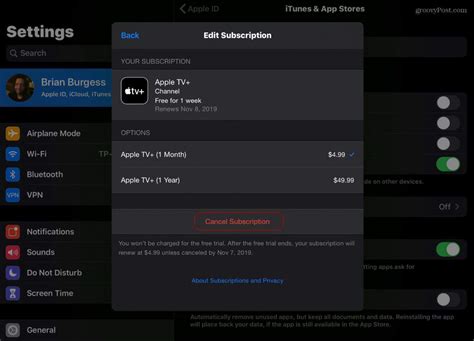 Canceling Apple TV+ on an iPhone or iPad