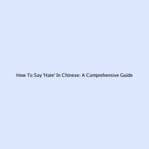 How to Say ‘Hate’ in Chinese: A Comprehensive Guide