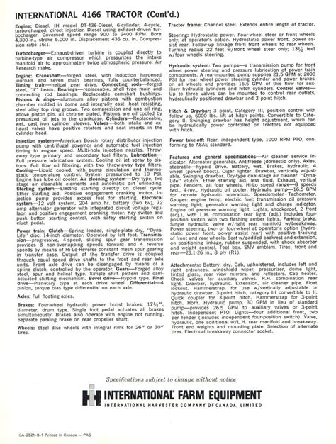Now, let’s get down to the nitty-gritty details that make the IH 4166 stand out. When this tractor rolled off the assembly line, it was packing some serious punch for its day. At its heart, you’d typically find a robust diesel engine. The exact horsepower varied slightly depending on specific configurations or updates, but we’re generally talking about a machine with ample power to tackle tough plowing, tilling, or hauling jobs. These engines were known for their torque and durability , essential qualities for heavy agricultural work. Beyond the engine, the IH 4166 often featured advanced (for its time) hydraulic systems. This meant it could efficiently power various implements – think big plows, cultivators, balers, and loaders. The lift capacity and hydraulic flow rate were critical factors that determined its versatility on the farm or in the field. Transmission-wise, IH often equipped these tractors with multi-speed gearboxes, providing operators with the flexibility to select the right speed and power for different tasks. Whether you needed slow, steady power for heavy pulling or a quicker pace for roading, the transmission likely had you covered. The operator’s station was designed with functionality in mind. While not as ergonomic or comfortable as modern tractors, controls were generally laid out logically, and the driver had good visibility of the work being done. Safety features, while perhaps less sophisticated than today’s standards, were still a consideration in the design. Furthermore, the overall build quality of the IH 4166 was a major selling point. These machines were built with heavy-gauge steel and robust components, designed to withstand the rigors of continuous, demanding use. The frame, axles, and hitch were all engineered for strength and longevity. For those interested in the technical side, understanding the PTO (Power Take-Off) capabilities is also crucial. The PTO speed and power output would dictate what types of PTO-driven implements the tractor could effectively operate. Finally, features like the draft control system were often incorporated, allowing for more precise control of mounted implements like plows, automatically adjusting based on soil resistance. These integrated systems showcased IH’s commitment to providing efficient and effective solutions for agricultural professionals. The combination of a powerful engine, capable hydraulics, a solid transmission, and durable construction made the IH 4166 a highly capable and sought-after machine in its operational era, defining a benchmark for performance and reliability in its class.