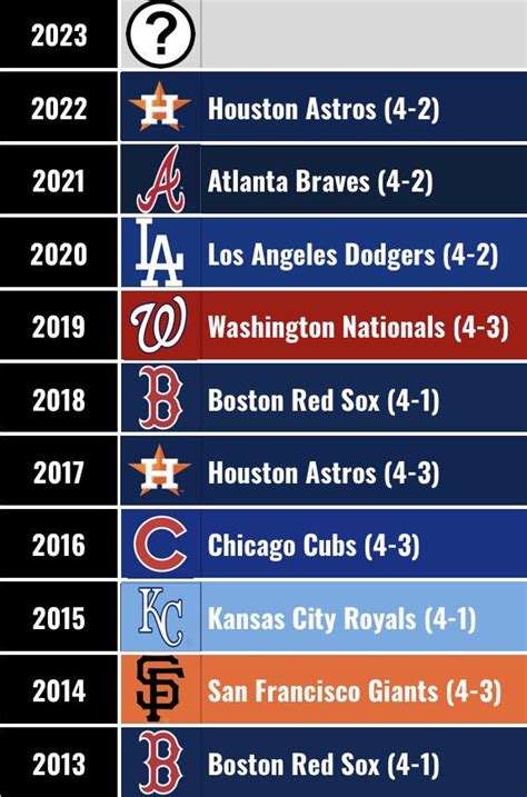 \Alright, baseball fanatics! Let’s dive into the thrilling world of the IIMLB and celebrate the teams that have clinched the coveted World Series title since the year 2000. We’re talking about those unforgettable moments, the star players, and the nail-biting games that have kept us on the edge of our seats. So, grab your peanuts and cracker jacks, and let’s take a trip down memory lane!
