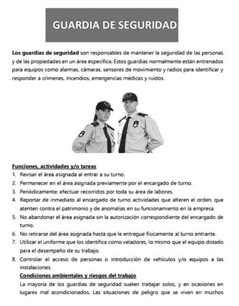 • Trabajo como guardia de seguridad: This translates to “I work as a security guard.” It’s a more descriptive way of explaining your profession. You can use this when you want to emphasize that being a security guard is your job or occupation.