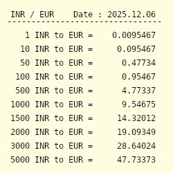 Current INR to EUR Exchange Rate