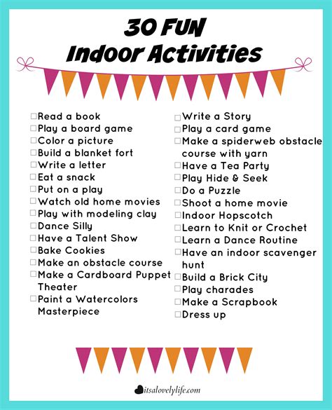 So, there you have it! A bunch of awesome indoor activities to keep you entertained, creative, and learning. Don’t let a rainy day get you down. Embrace the indoors and have some fun!