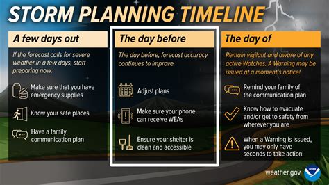 • Pay Attention to Warnings and Alerts: If the National Weather Service issues a warning or alert for your area, take it seriously. These warnings are issued when there is a significant threat to life or property.