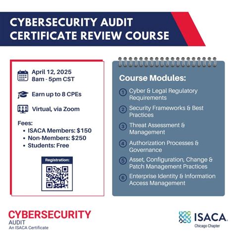 4. Certification Support : Thinking about getting certified? ISACA Chicago can help. They offer study groups, review courses, and mentorship programs to help you prepare for exams like CISA, CISM, and CRISC. These certifications can significantly boost your career prospects and earning potential. The chapter also provides guidance on the certification process and helps you understand the requirements. With their support, you’ll be well-prepared to ace those exams and take your career to the next level.