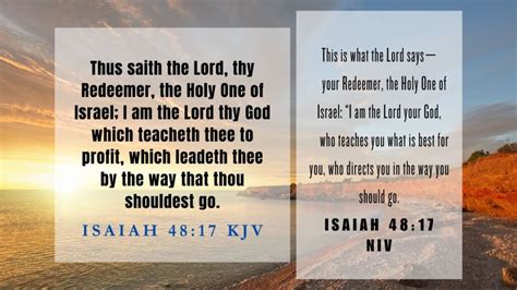 Hey guys, let’s dive into the profound meaning of Isaiah 48:17 KJV . This verse, often quoted and pondered, holds a powerful message about God’s guidance and our obedience. It reads: “Thus saith the LORD, thy Redeemer, the Holy One of Israel; I am the LORD thy God which teacheth thee to profit, which leadeth thee by the way wherein thou shalt go.”