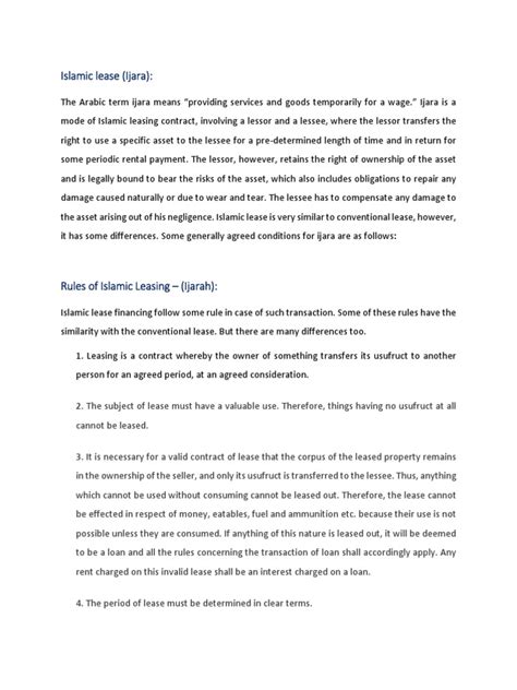 At the heart of it, Islamic lease agreements , known as Ijarah , are all about transferring the right to use something—a car, a house, equipment—from one person to another for a set period, in exchange for an agreed-upon payment. But here’s the kicker: the ownership of the item stays with the lessor (the owner). This is a key difference from conventional loans, where you’re borrowing money to buy something outright.
