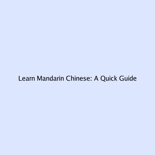 Learn Mandarin Chinese: A Quick Guide