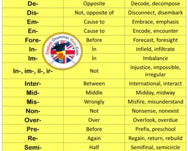 • Vocabulary Expansion : Knowing common prefixes allows you to decipher the meaning of unfamiliar words quickly. Instead of memorizing thousands of individual words, you can learn a handful of prefixes and apply them to new situations.