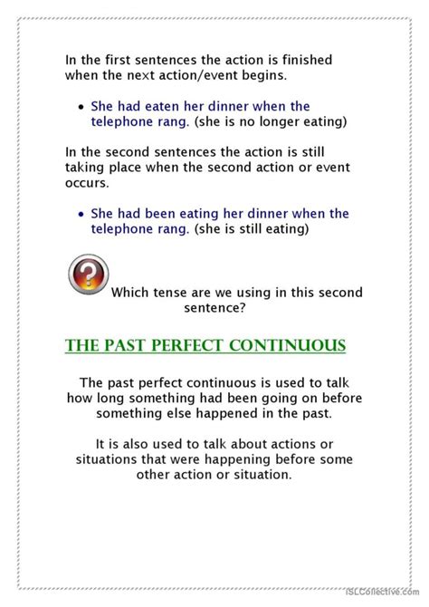 - Past Perfect Continuous vs. Past Perfect Simple