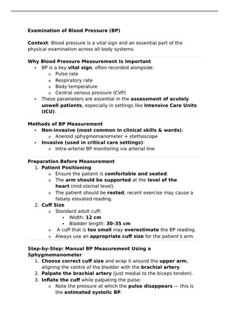 So you’ve done it! You’ve taken the blood pressure accurately. But the job isn’t over yet, guys. Documenting and communicating your findings are the final, crucial steps in the blood pressure OSCE, and they showcase your professionalism and clinical reasoning. Once you have your systolic and diastolic readings, record them immediately . Don’t rely on memory. Use a clear, standardized format. Typically, it’s written as systolic/diastolic mmHg , for example, 120 80 mmHg. You should also note the arm used (e.g., “Right arm” or “Left arm”) and the date and time of the measurement. If there were any relevant patient factors you observed or discussed – like if the patient reported feeling dizzy or if they were in pain – you might briefly note that contextually, depending on the OSCE marking scheme. Your communication skills are just as important as your technical ones. After taking the reading, you need to communicate the result to the patient in a clear, understandable way. Avoid jargon. Instead of saying, “Your BP is 120 over 80,” you could say, “Your blood pressure is 120 over 80. This is generally considered within a healthy range.” If the reading is abnormal, you’ll need to communicate that appropriately. For example, “Your blood pressure today is 150 over 95. This is higher than we’d like to see, so we’ll need to discuss this further and potentially schedule a follow-up.” Always maintain a reassuring and professional tone. In an OSCE, you might also be asked to interpret the reading or discuss next steps with the examiner. Be prepared to explain what the numbers mean in terms of the patient’s health status and what actions you would take (e.g., advise lifestyle changes, arrange further investigations, escalate to a senior clinician). This demonstrates your understanding of the clinical implications of your measurement. Remember, the documentation is your record, and the communication is how you ensure the patient understands their health status and the plan. Both are critical components of quality patient care and will be assessed in your OSCE. So, practice not just the ‘doing’ but also the ‘telling’ and ‘writing’!