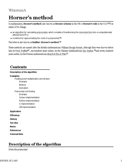 Another significant aspect of the LaTeX Horner’s Scheme is dealing with missing terms in your polynomial. If your polynomial is P(x) = 3x^4 - 2x^2 + 5 , notice there’s no x^3 term or x term. In Horner’s method, it’s absolutely vital to include a zero for these missing coefficients. LaTeX doesn’t inherently enforce this, so it’s up to you, the user, to ensure your input coefficients are correct. When creating your array , simply include 0 in the appropriate place: 3, 0, -2, 0, 5 . The array structure will naturally accommodate this, making it clear to the reader that a coefficient was zero. This attention to detail is what makes your mathematical documents truly high-quality. For even more sophisticated visual layouts, you might explore the tikz package, especially if you want to draw connecting lines, arrows, or boxes around specific parts of your Horner’s Scheme to highlight the flow of the algorithm. While tikz offers incredible flexibility for drawing, it also adds complexity, so it’s often best reserved for advanced pedagogical materials or research presentations where visual emphasis is paramount. For most standard academic work, the array environment with strategic extbf for emphasis or extit for specific terms, combined with \[\] for spacing, will suffice in creating a highly professional and readable LaTeX Horner’s Scheme . Furthermore, for educators or those who frequently present Horner’s Method, creating a custom LaTeX command or environment could be a huge time-saver. You could define a command that takes the coefficients and the evaluation point as arguments, then automatically generates the array structure. This not only streamlines your workflow but also ensures absolute consistency in presentation across multiple examples. For instance, using ` ewcommand{inom}[2]{egin{array}{@{}c@{}}#1\#2 ule{0pt}{1.3ex}}