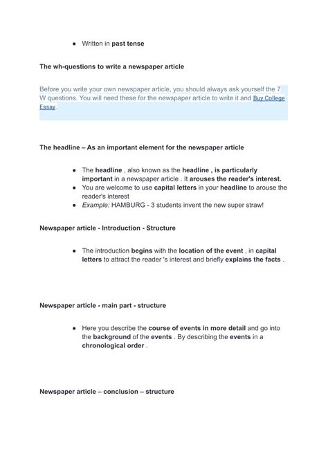 Mastering Past Tense In Newspaper Articles