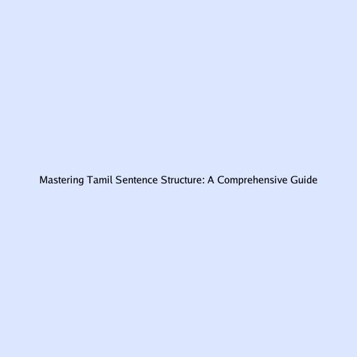 Mastering Tamil Sentence Structure: A Comprehensive Guide