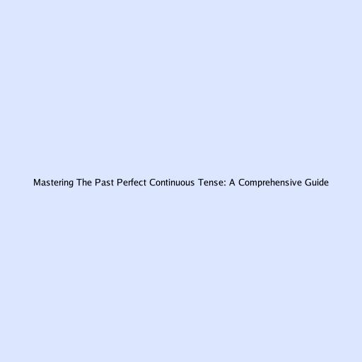 Mastering the Past Perfect Continuous Tense: A Comprehensive Guide