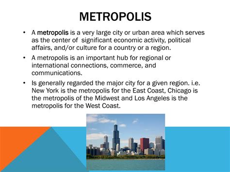 Now, when we consider what makes a city a metropolis, we usually think of a large population, a bustling economy, and a high level of influence. The city’s impact can be felt far and wide, influencing everything from the local region to global trends. These cities are also complex ecosystems, with different sectors like finance, technology, and art all working together. They’re often home to diverse communities, each adding its own flavor to the urban tapestry. And let’s not forget the infrastructure! The subway systems, highways, and public services that keep these cities running are a testament to human ingenuity. All of this is what sets a metropolis apart from a regular city.