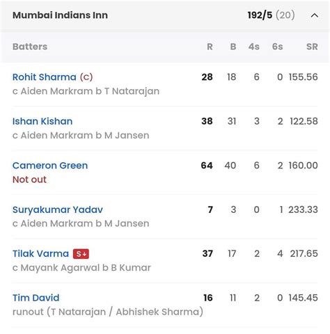 For those of you who are data enthusiasts or just want to dive deep into every single detail, here’s the full scorecard from the MI vs PBKS match in 2022. This comprehensive table includes all the nitty-gritty stats, from individual scores and batting strike rates to bowling figures and economy rates. It’s the ultimate resource for analyzing every aspect of the game and understanding exactly how each player contributed to the final result. Whether you’re interested in the top run-scorers, the most economical bowlers, or the number of sixes hit, you’ll find all the information you need right here. Take a look at the scorecard below and relive every moment of the match, one statistic at a time! This detailed breakdown provides a complete picture of the game and allows you to delve into the specifics of each performance. You can use this information to compare players, analyze strategies, and gain a deeper appreciation for the intricacies of T20 cricket. So, without further ado, here is the full scorecard for your viewing pleasure. Enjoy the stats and happy analyzing!