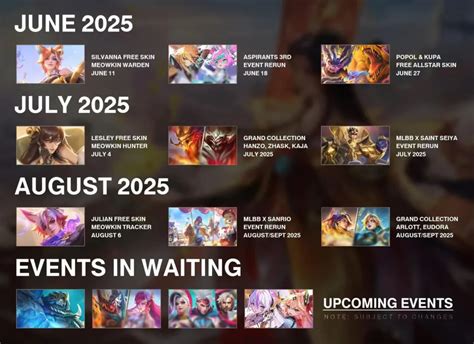 Hey Mobile Legends: Bang Bang (MLBB) enthusiasts! Are you all excited about what August 2025 has in store for us? Well, you’re in the right place! We’re diving deep into the leaked information and predictions surrounding the MLBB events for August 2025. This article is your one-stop shop for all the juicy details, from new skins to exciting game modes and potential collaborations. So, buckle up, grab your favorite snacks, and let’s unravel the mysteries of MLBB’s August 2025 together! We’ll cover everything from the usual suspects, like the Starlight skin and weekly events, to potential surprises that could shake up the meta. This is all about getting you, the players, hyped and informed. Remember, these are based on leaks and predictions, so always keep an open mind! The MLBB universe is always evolving, and August 2025 promises to be no different. Let’s see what the future holds, shall we?