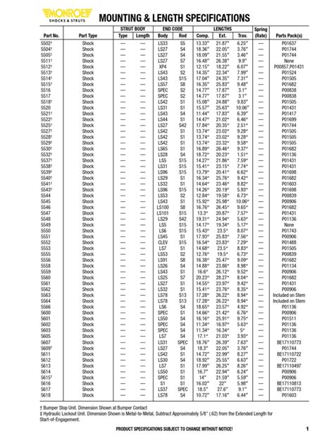 Alright, let’s get into the nitty-gritty of reading a Monroe shock absorber length chart . These charts might seem intimidating at first, but once you understand the key components, you’ll be navigating them like a pro. Generally, a Monroe shock absorber length chart will have several columns, each providing critical information about the shock absorber’s dimensions and specifications. The most important columns usually include: